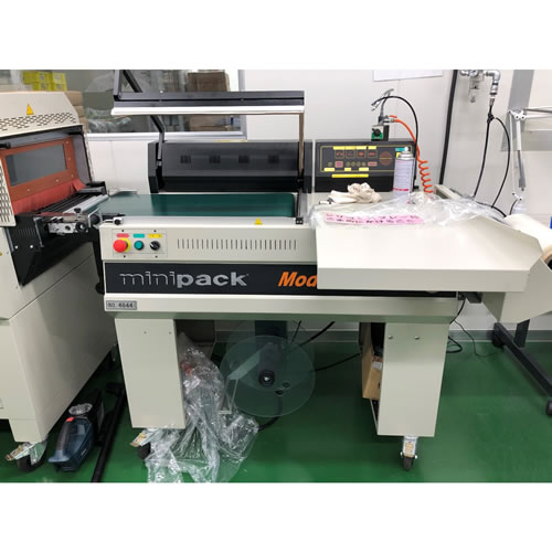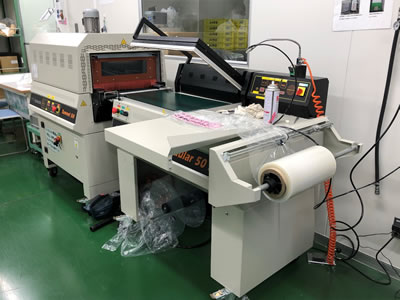 作業者は包装物を機械に入れるだけ…あとは機械が自動的に包装し、コンベアによってトンネルに送られます。