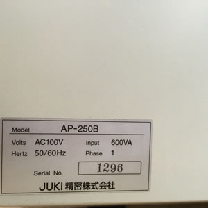 中古JUKIエアー緩衝材製造機 品番 AP-250B 問い合わせ番号 Z-0924-4 |