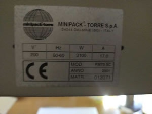 | 中古成光産業シュリンク包装機/品番 minipack-torre FM-75C 問い合わせ番号 Z-0936-4 |