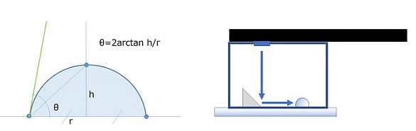| 現場で接触角計測、データ保存、パソコン必要なし 接触角解析用のパソコンを用意しなくても、現場で接触角を計測・保存できます。 IoT に対応したBleutooth,Wifi,USB-TypeC など簡単接続、ワイヤレス、バッテリーオペレーションで接触角計測。※ ![]() ■特長及び機能 ◼ サンプルに置くだけ、試料カット不要。 ◼ パソコン接続不要。ワイヤレス。 ◼ 接触角 θ/2 法 解析 ◼ 本体寸法 W 100x D 90 x H 120 mm ◼ 最小サンプルサイズ □ 90mm ◼ 日本語、英語対応 ◼ 6400 万画素 超高精細接触角計測 ![]() ■用途例 ・屋外計測 ◼ 路面、床面計測用途 ◼ 大面積サンプル計測 ◼ 濡れ性評価 ◼ 親水性評価 ◼ 清浄度評価 ![]() ■簡単データ共有 Wifi 機能 Blewtooth やUSBTypeC ケーブルによってパソコンと Excel・画像データ共有が簡単に可能になります。 ■サンプル上に置くだけ接触角測定 ![]() ■仕様