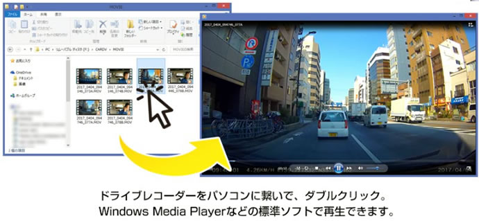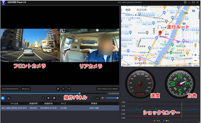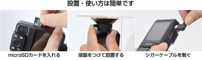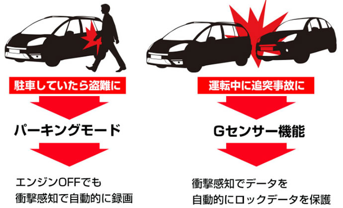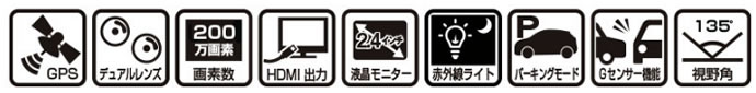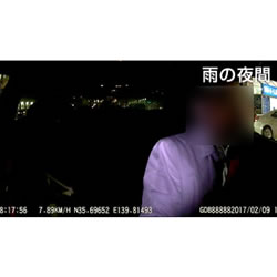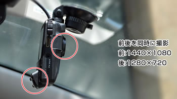 | 前後の撮影ができてGPS機能付き。 高画質な動画が特別なソフトなしで見れる高品質ドライブレコーダー ![]() ![]() ![]() ![]() ![]() ![]() ![]() ■前後の撮影ができてGPS機能付き高品質ドライブレコーダー 車の前の撮影と、車内の撮影。同時に撮影できて、しかもGPS機能で場所や速度を記録できるドライブレコーダーです。 本製品は二つのカメラレンズがあり、走行中の映像と車内の映像を同時に撮影する事ができます。 前を撮影するフロントカメラは1080P。 車内を撮影するリアカメラは720Pで撮影可能。 非常にクリアな映像を同時に撮影でき、また撮影した映像は特別なソフトなしにパソコンで見る事ができます。 GPS機能付きなので、速度や経路の情報を取得します。 専用のソフトで詳細な走行状況を簡単に確認する事が出来ます。 視界の邪魔にならないコンパクトタイプのドライブレコーダー。小さくても機能は満載です。 ![]() ■前後同時に撮影できるデュアルレンズ搭載 ![]() ■フロントカメラ ![]() ■リアカメラ ![]() ■前後同時に撮影できるデュアルレンズ搭載 前と後ろにカメラレンズが搭載されているので、車の前方と車内を同時に撮影できるドライブレコーダーです。 フロントカメラは解像度1440×1080、リアカメラは解像度1280×720。 高画質高圧縮のH.264を採用。 WDR(ワイドダイナミックレンジ)搭載。 車のナンバープレートもはっきりと認識できるクリアな映像を記録できます。 また赤外線LEDライトはリアカメラのみ4灯搭載ですが、 高画質なので街中などではライトが必要ないぐらいにキレイな映像を撮影する事が出来ます。 ![]() ![]() ■撮影データを簡単にパソコンで見る事が可能 本製品は、撮影したデータを特別なソフトなしでパソコンで見る事ができます。 専用ソフトが必要な製品だと、会社などで使用する場合、管理者権限がないのでソフトがインストールできなかったり、 システム上使えないなどの問題があります。 しかしこのドライブレコーダーならば、パソコンに繋げばそのまま動画として 再生する事ができます。 ![]() ![]() ![]() ■設置も使い方も簡単 二つのレンズを搭載しているドライブレコーダーですが、コンパクトサイズなので 運転中視界の邪魔になる事はありません。 付属の吸盤で取り付けるだけの簡単設置。 あとはエンジンをかければ、自動的にドライブレコーダーもスタート。 エンジンを切ればドライブレコーダーもストップ。 特にボタン操作をしなくても、自動的にどんどん録画していきます。 データはカードの容量がいっぱいになると、 自動的に古いデータから上書きするので カードを交換する手間はありません。 ![]() ![]() ![]() ■GPS機能で走行状況を記録 本製品にはGPS機能が付いています。 速度、走行ルート、方角やショックセンサーなどの情報を撮影と同時に取得します。 専用のソフトで動画を再生しながら、情報を確認する事ができます。 ![]() ■日本語メニュー&日本語説明書 本製品は日本語メニューで表示されます。 また使い方を詳しく説明した日本語説明書付き。 英語の説明書しか付いていなくて、使い方がいまいちわからない、 という心配もありません。 ![]() ■パーキングモード&Gセンサー 駐車して車から離れている時に、当てられた。 こんな時に活躍するのがパーキングモードです。 ドライブレコーダーにはバッテリーが内蔵されており、 エンジンがかかっていない時でも、衝撃を感知すると自動的に電源が入り、録画を開始します。 また運転中に衝突されるなどのショックを感知して、 録画中のデータを保護(ロック)するGセンサー機能も完備。 間違って上書きしたりする事もありません。 ![]() ■サイズ詳細 ![]() ■付属品 ![]() ■仕様