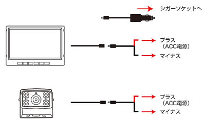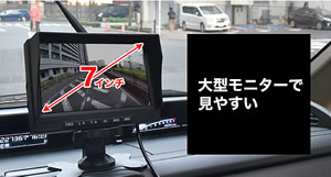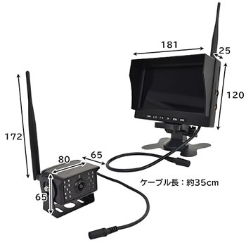 | バックモニターに録画機能付き 取付場所を選ばないワイヤレスカメラ モニター用スタンド2種類付属 ネジどめ・両面テープでの設置が可能 ![]() ![]() ■ワイヤレス死角カメラ録画機能付き バックモニターに録画機能付き 取付場所を選ばないワイヤレスカメラ モニターとカメラの接続はワイヤレス。 使用可能距離は100mまでなので、大型トラックや重機でも取り付け可能な録画機能付きカメラです。 目視だけではカバーできない重機の死角をなくし、接触事故を未然に防ぐサポートをします。 赤外線ライトを18灯搭載しているので、夜でもしっかりモニタリングができます。 ![]() ■ワイヤレスだから大型トラックなどでも設置可能 死角が多い大型トラックや重機などに取り付ける場合、長いケーブルを這わすのが大変になります。 【12/24V対応ワイヤレス死角カメラ録画機能付】はカメラとモニター本体をワイヤレスで接続。 長いケーブルを使う必要はありません。 死角になりやすい場所に設置すれば、しっかりモニタリング。 録画機能でドライブレコーダーとして使用することもできます。 ![]() ![]() ![]() ![]() ■赤外線ライトで夜もサポート 本製品には18灯の赤外線ライトを搭載しています。 センサーが暗闇を感知すると、自動的に赤外線ライトが点灯します。 赤外線ライト点灯時は映像がモノクロになります。 ![]() ■リバースラインでサポート 本製品にはバック時に便利なリバースライン機能が搭載されています。 バックランプなどのプラス配線にケーブルを接続することで、車をバックする際に画面に駐車のガイドラインが表示されるようになります。 ※表示しない設定も可能です。 ![]() ■その他の機能 モニターは大型7インチ。 大きな画面で映像を確認することができます。 またループ録画機能を搭載しているので、古いデータから上書き保存をしていき、SDカードを交換することなく長時間連続撮影することができます。 ![]() ■設置について 本製品は車体の常時電源・ACCに直接接続する必要があります。 機械やトラックの説明書を確認して設置してください。 ご不明な場合は自動車整備工場などに取り付けを依頼することをお勧めします。 ![]() ■寸法図 ![]() ■仕様