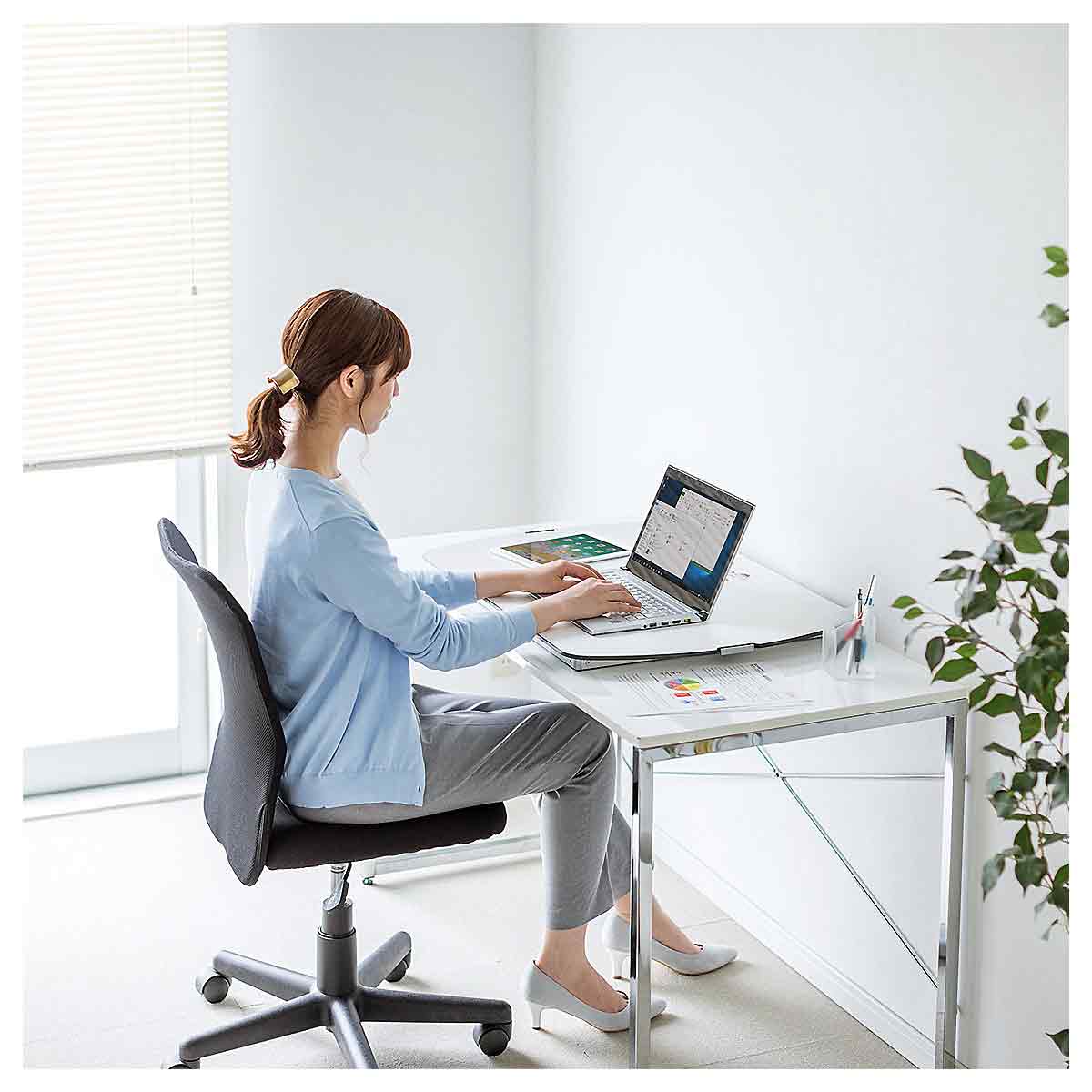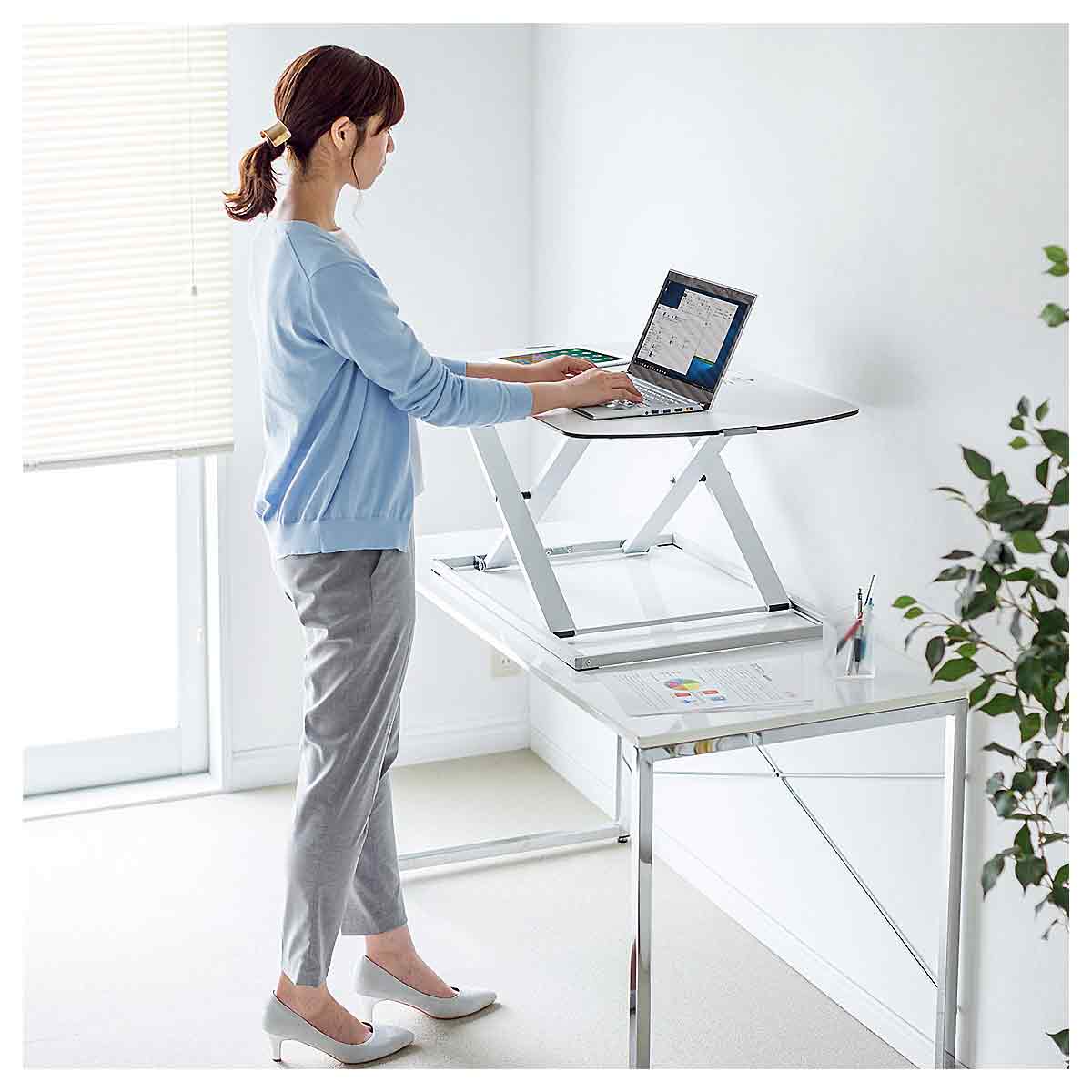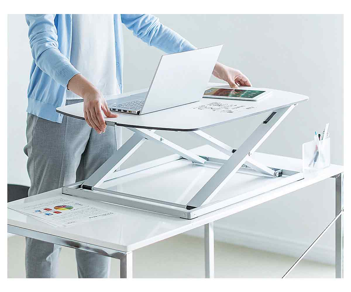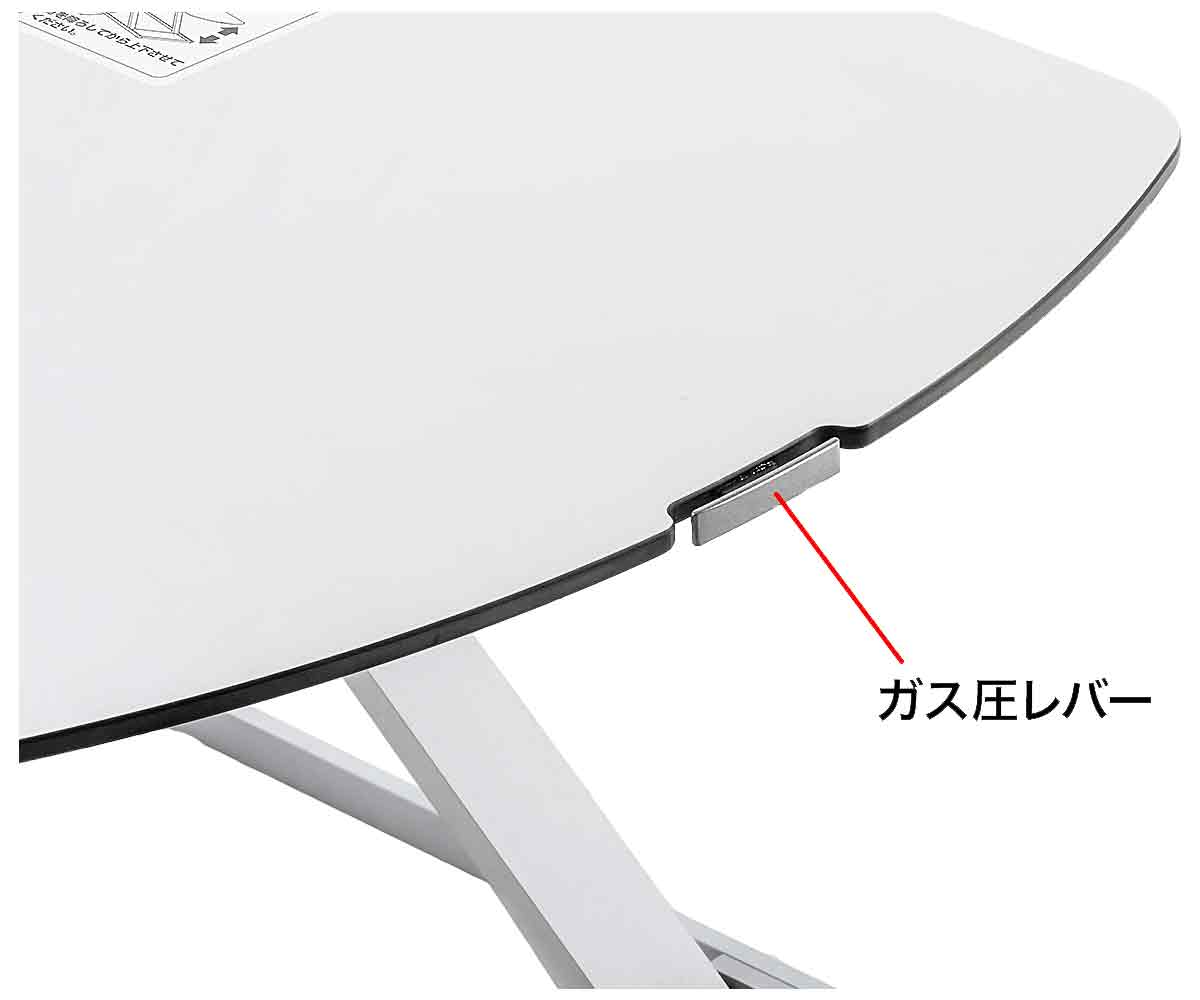座り作業、立ち作業の切り替えを簡単に行い、生産効率をアップするガス圧式リフトアップデスク。 ![]() ■特長 ●お持ちのデスクに置くだけで、上下昇降機能を追加することができます。 ![]() ●簡単に昇降できるガス圧タイプ 無段階で高さを調節できます。 天板両サイドにあるレバーを同時に引くことで高さを調節することができます。 ![]() ![]() ●脚部裏面には傷防止クッション付き ![]() ●1日の中で立ち作業、座り作業の時間を作ることで疲労軽減になります。 ![]() ![]() 【注意】 ※物を降ろしてから上げてください。 ※物を降ろしてから下げてください。 ※水平で安定した場所で操作してください。 ■仕様