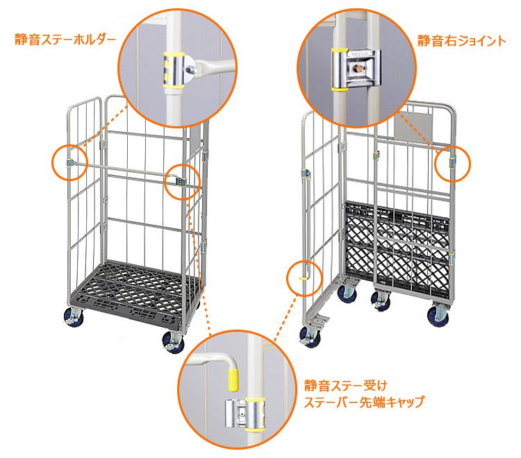 折り畳みも組み立ても簡単ワンタッチ。すっきり重ねて移動・保管できます。![]() ![]() ■特長 ●省スペース設計 大量の荷物をラクラク運んで、使わないときはすっきりと片付けられるワークテナー。 ワンタッチシステムでパイプが自動的にロックされるため、折り畳むときも使用時のセッティングも片手で簡単・スピーディに。軽量なので、女性にもやさしく扱えます。 折り畳んで重ねておけば保管スペースのムダがなく、キャスターで移動もラクラク。現場の声に応え、使わないときの使いやすさまで考えたうれしい設計です。 ![]() ●搬送時はもちろん、折り畳み・組み立て時も静かです。 搬送中の騒音は、プラスチック床板なら約87dB(スチール床板は約92dB)。さらにオプションの静音パイプ仕様なら約65dBと大幅な低減が可能です(いずれもメーカー調べ)。もちろん、折り畳みや組み立ての際も静かに作業でき、職場環境の改善につながります。 また、プラスチック床板は軽量で作業しやすく、トラックへの積載荷数を増やせます。汚れも簡単に拭き取れるのでいつも清潔に使えて、大切な積載物を錆で汚す心配もありません。 ![]() ●すぐれた防錆性能を発揮し、強さと美しさを保つダブルコーティング塗装。 過酷な環境下でもすぐれた防錆性能耐候性能を発揮して、強度と美観をキープするダブルコーティング塗装。 粉体塗装はメラミン焼付塗装の約10倍の強度があり、屋外で使用しても光沢の劣化がほとんどありません。 ■仕様