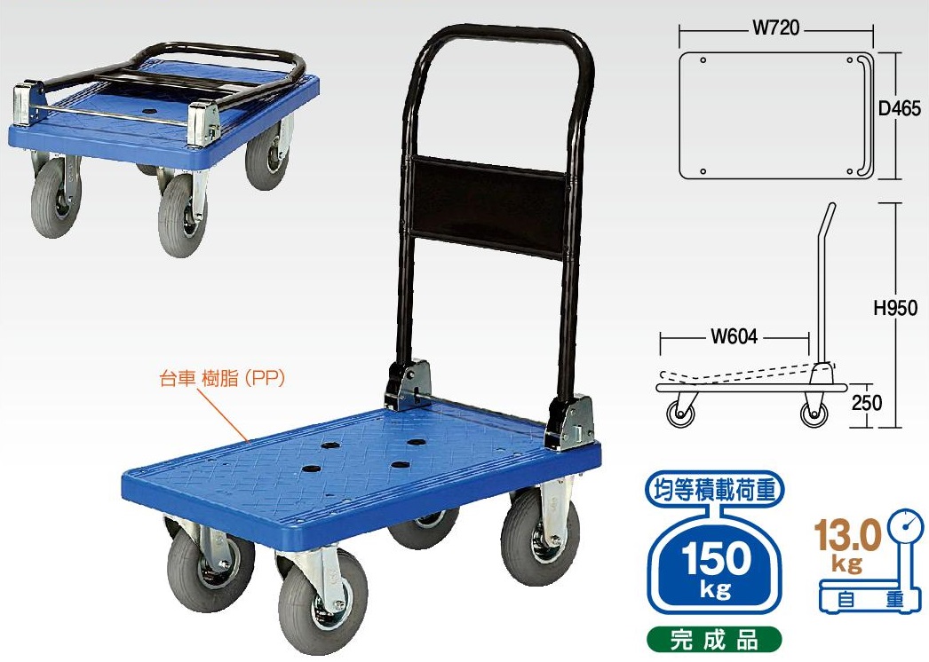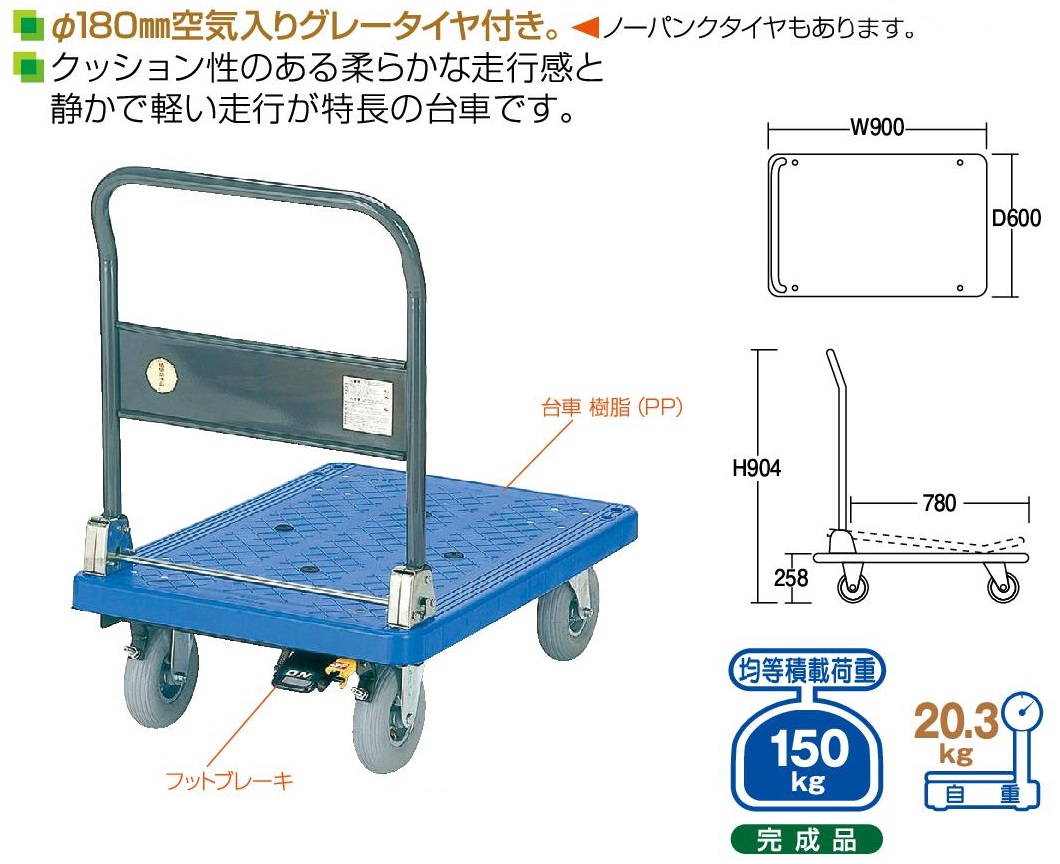 ■大径エアータイヤ樹脂台車 M198RBL-150ARN ![]()