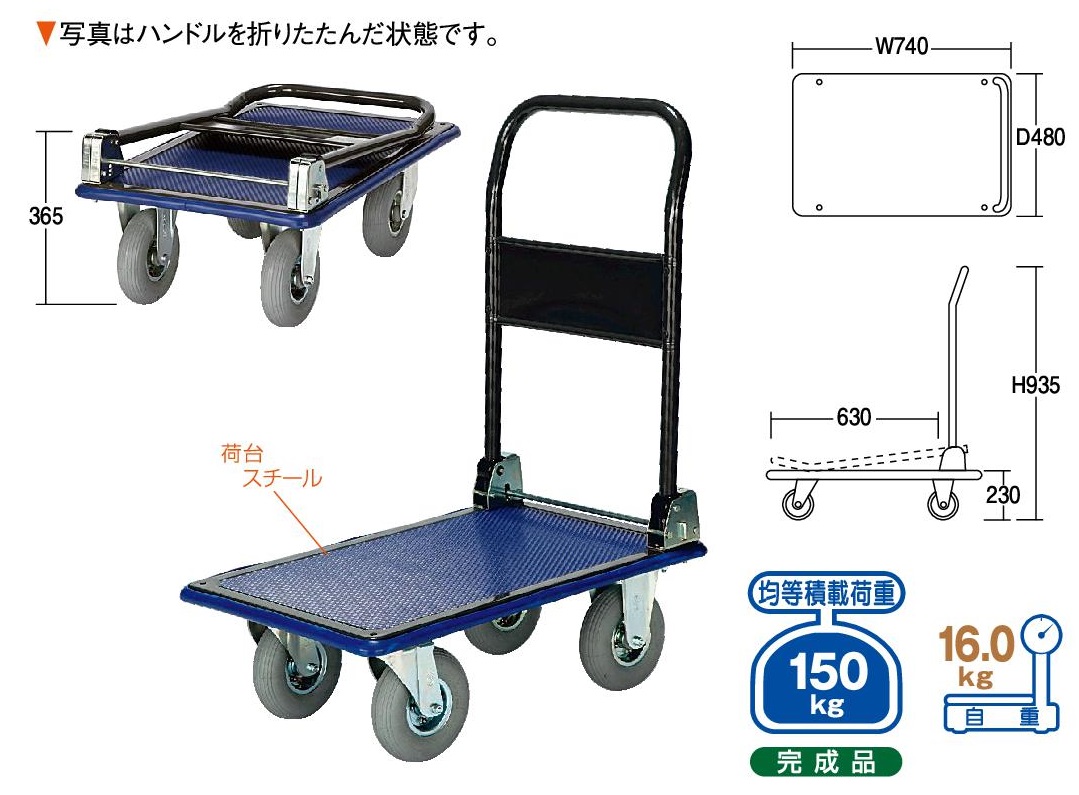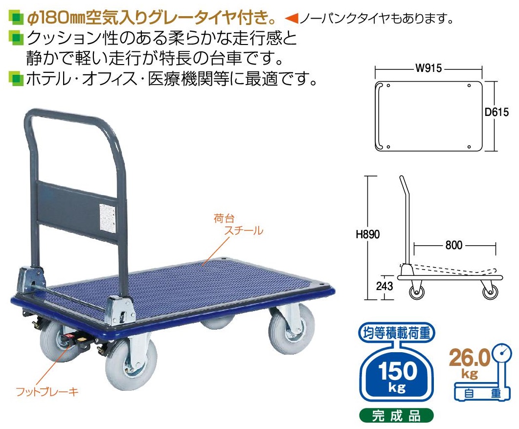 大径エアータイヤスチール台車 品番 M198S-150ARN 価格は下記をご覧ください。 |