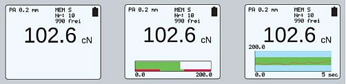①測定値 ②測定値及びコンパレータポイント付きバーグラフ