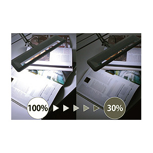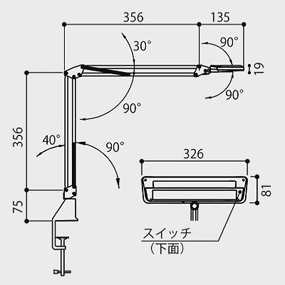 ■特長 ●色の再現性に優れた高演色LEDを採用。 LEDには演色評価数においてRa90以上の基準をクリアした高演色性能の素子を採用しています。 近年注目されているWELL認証(健康的で生産性の高いオフィスの国際的な認証制度)や色の正確性が求められる美術館や医療現場で求められる基準をクリアしています。 【演色評価数とは】 演色評価数とは、モノの色の見え方に対して、照明が与える色への影響度合を表す数値のこと。一般的には自然光(太陽光)を基準として、近いものほど「演色性が良い」、かけ離れたものほど「演色性が悪い」とされます。この演色性を客観的に判断できるように数値化したものを演色評価数といい、演色評価数(Ra)が100に近いほど太陽光下での色に近いとされています。 ![]() ●平行移動するシンプルアーム 長年の経験と実績によって培われたノウハウを活かして今までにはない軽くて細い、スムーズな平行移動するアームにしました。 ●ハンドル付きヘッド 操作しやすい、ハンドル付きヘッド。 ![]() ●明るさ無段階調光(100%~30%) 明るさを無段階にコントロール。周囲の明るさに応じて変更ができ、光のムダがありません。プッシュスイッチは100%~30%の無段階調光とダブルクリックで100%点灯が可能です。次回点灯時に直前で使用した明るさを再現する「ラストメモリー機能」を搭載。 ![]() ●JIS-Aクラス相当の明るさ コンパクトなヘッドながら直下照度1,540Lxを確保、JIS規格A相当の明るさを実現。教科書を2冊並べてもしっかりと明るく照らします。 ●多重影のない目にやさしい光 鋭いLEDの光は強い明暗を生み、多重の影によって作業に悪影響を与えることがありますが、ゼットライトは柔らかい影の使いやすい光を追求しました。 ![]() ●下側レイアウトスイッチ 座ったままで操作しやすい、下側レイアウトスイッチ。 ![]() ●クランプ クランプ同梱(黒色)。取付可能厚55mmまで。 ![]() ●白熱灯80W相当 LED 9.0W×1 直下照度1,540Lx。(測定高:40cm)白熱灯80W相当の明るさ。 ![]() ■仕様