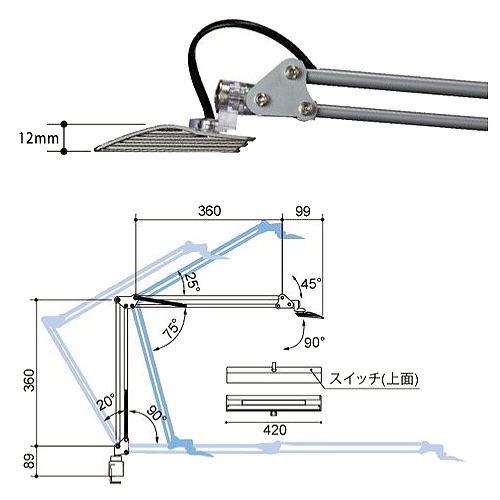 | ヘッドの水平を維持して可動する軽くてスムーズな動きのアーム。 肌色がキレイに見える明るさ LED光源の小ささを最大限に活かした極薄フォルム ■タイプ