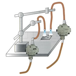| エアブローガン以外でのご使用方法 エアブローガン専用モデルですが、条件次第では固定ノズル用としても使用できます。 小型なので限られたスペースでもノズル周辺に取り付けが可能で活きの良いパルスエアを実現します。 (インラインタイプとして使用可能) ![]() ■使用例 ①部品加工後の分粉の吹き飛ばし ②部品洗浄後の水切りブロー ③パーツフィダー/搬送アシスト ![]() ![]() ■ご使用条件の目安 ●ノズル内径:φ2~4 ●エア連打からノズルまでの配管長さ:1m以下 ●供給圧力:0.35~0.8MPa ●省エネ効果:パルス設定 10Hzで30%の削減が見込めます。 ■注意事項 ●デモ機でお試し頂くことをお勧めします。 エア連打はエアブローガン専用モデルとして開発した製品のため、条件によっては使用できないケースも御座います。 ご購入前にはデモ機で必ずお試し頂くことをお勧めします。 ●24時間連続作動の場合は別途ご相談ください |