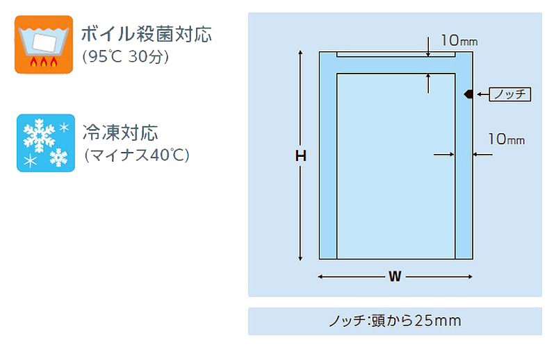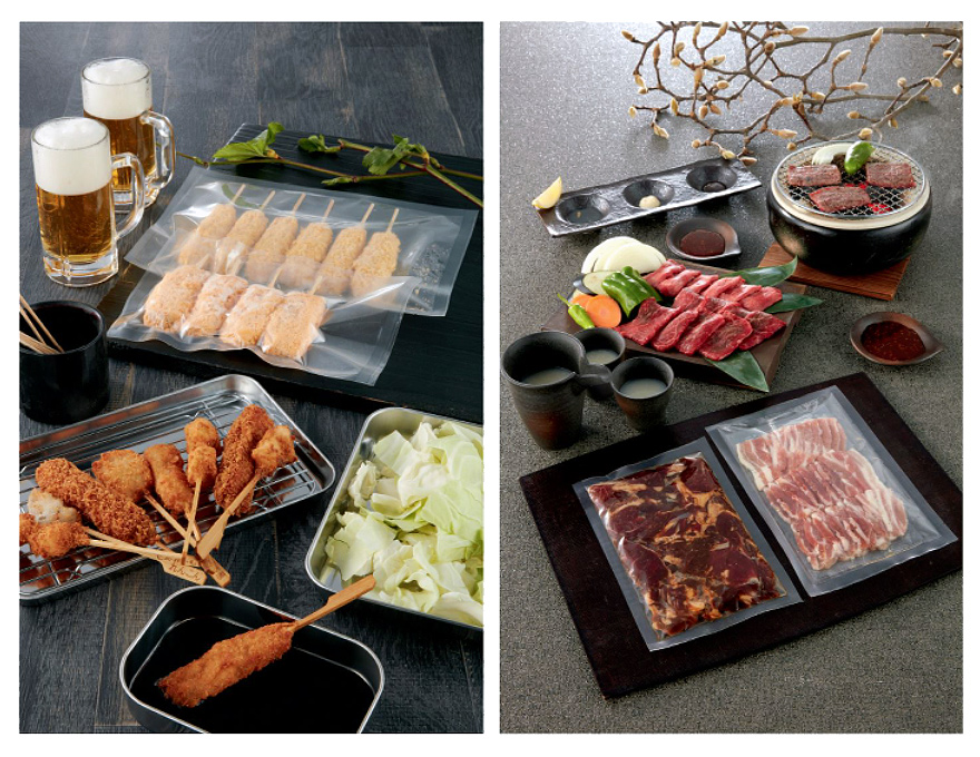 | ■特長 ●真空包装に適した幅広い用途の三方シール袋 ●ボイル殺菌95℃・30分対応 ●冷凍-40℃対応 ■用途例 ●農產加工品 カット野菜、きのこ類、豆類、いも類、こんにゃく ●漬物 梅干、しば漬、ぬか漬、らっきょう漬、みそ漬 ●畜産加工品 ハム、ソーセージ、ベーコン、精肉、ホルモン ●水産加工品 切り身、むきえび、いか、酢メ、貝類 ●練り製品 かまぼこ、はんぺん、ちくわ、さつま揚げ、つみれ ●冷凍食品 コロッケ、ピラフ/炒飯、ハンバーグ、シーフードミックス、ミックスベジタブル、カツ、魚フライ、味付焼肉 ●惣菜 煮物、煮豆、厚焼きたまご、ポテトサラダ、松前漬 ●飲料 あま酒 ●日用品 肥料、保冷剤 ![]() ■仕様 ![]()