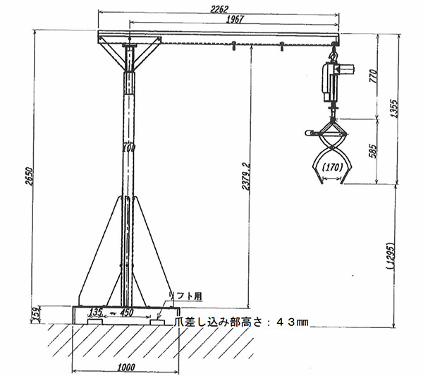 軽量材料袋用据え置き型ジブクレーン吊り上げ荷重30KG 品番 M2244JBS-30KG |