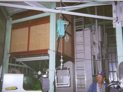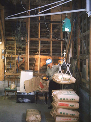 ■軽量材料袋用壁取り付け型ジブクレーン吊り上げ荷重30KG/M2244JBW-30KG 作業場の柱に据付タイプ 柱にアームを固定し、2.7m×180°反転の範囲で自由に玄米の移動ができます。 ![]() ![]() |