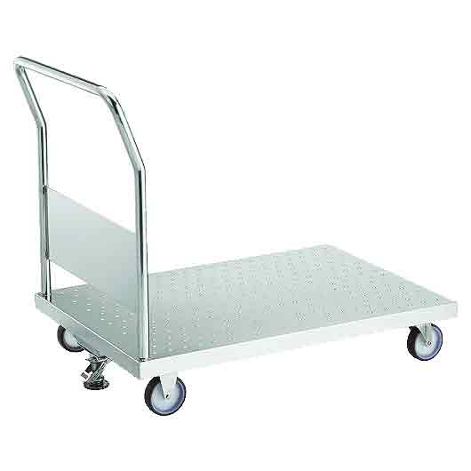 オールステンレス エンボス天板台車(固定ハンドルタイプ・ナイロンウレタン車輪) 品番 M227S-EM3-100NUT 価格は下記をご覧ください |