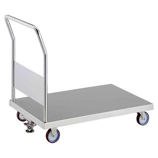 | ■特長 ●荷台にしっかりと補強の入った、板厚1.5tの頑強な溶接式のSUS304製台車です。 ●キャスターもSUS金具ですので、食品工場やクリーンルームで使用できます。 ■タイプ