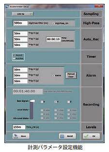 • 加速度振動の計測と記録 :