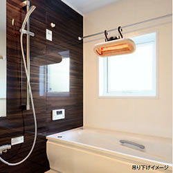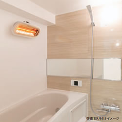 ■暖房目安 ![]() ![]() ![]() ■電源回路部などの異常発熱を検知 ![]() ■吊す/取り付ける、選べる2つの設置方法 ●ランドリーパイプに吊るす 浴室にランドリーパイプが設置されている場合は、本体をパイプに 吊して使用することができます。 ヒーターの角度は調整可能です (35~65°の範囲)。 ![]() ●壁面に取り付ける 壁面に付属の取付金具(写真のもの)を固定することで、本製品を 壁面に設置できます。 ヒーターの角度は調整可能です。 ※ご注意: 壁面に固定するためのネジ類のご用意、取付金具の現場施工 などは、お客様によるものとなります。 ![]() ■使用イメージ ![]() ![]() ■配線イメージ(吊り下げ・DIYモデル共通) ![]() ■ロングケーブル ![]() ■取付用のおもな付属品 ![]() ■壁面へのアンカー止めについて 取り付け可能な壁パネル(例) 塩ビ鋼板複合、化粧鋼板、 塩ビステンレス鋼板 など ※すべての壁パネルでの取り付けを確認しているわけではございません。 取り付け不可能な壁パネル FRP、ホーロー、タイルなど ■壁パネルへの取り付け例 ![]() ■仕様