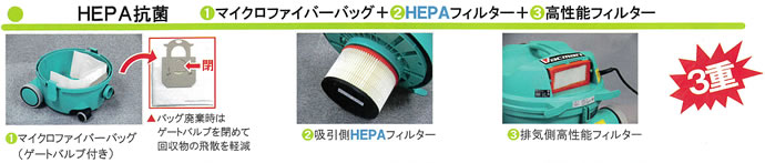 HEPAフィルター掃除機(抗菌樹脂マイクロファイバー吸塵袋付)病院学校向け 品番 M286HEPA-1177S 価格は下記をご覧ください |