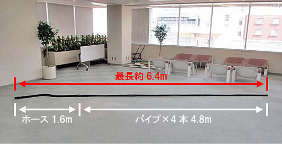 | 地上から安全に高所を清掃 足場や高所作業車がなければ難しかった高所の清掃を、 地上から安全に1人で清掃することが可能です。 ![]() ■最長 ![]() ■使用例 ![]() ![]() ![]() ■セット内容 ![]()