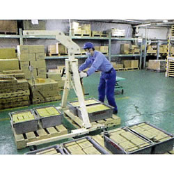 | 脚幅最大1,400mmまで調整が可能 足の入らない台車への積み下ろしや、複数のパレットや障害物をまたいで荷を積み下ろす作業に最適 アーム高さ2段階調整式 軽量:95kg ![]() ●ストッパーピンにより、荷を吊った状態で足幅700mm以下にならない転倒防止の安全設計 ●アーム収納時は足幅を450mmまで調整できるコンパクト設計。 ●荷の移動の際に、足幅調整が可能なため狭い通路も移動が可能。 ![]() ![]() ■仕様