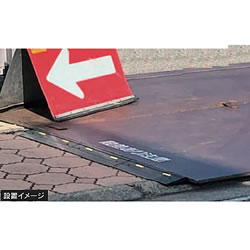 ※通行の多い場所で使用する場合は両面テープなどで固定して下さい。 ※火気の近くでの使用は避けてください。 ※敷鉄板へ設置するときは敷鉄板の取り扱い作業方法等を十分確認し、施工して下さい。 ※敷鉄板の下に設置する場合、敷鉄板の下に身体または手足などを絶対に入れないで下さい。 敷鉄板と地面の間に挟まれると重大な事故に繋がります。 |