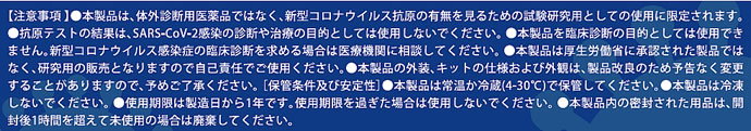 | 抗原検査キット 研究用 日本製 新型コロナウイルス(COVID-19) ※現在、在庫僅少のため、注文確定の前に必ず在庫確認のご連絡をお願いしております。 ![]() ![]() ![]() ■ご自宅で簡単に抗原検査ができるセルフチェックキットです。 ●3つの手順で簡単セルフチェック ![]() ![]() ■本製品は診断目的での使用ではなく研究用として販売しています。体外診断用医薬品ではありません ![]()