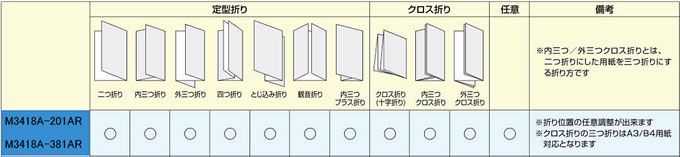 | 卓上自動紙折り機/品番 M3418A-201AR | 【詳細表示】 | ||||||||||||||||||||||||||||||||||||||||||||