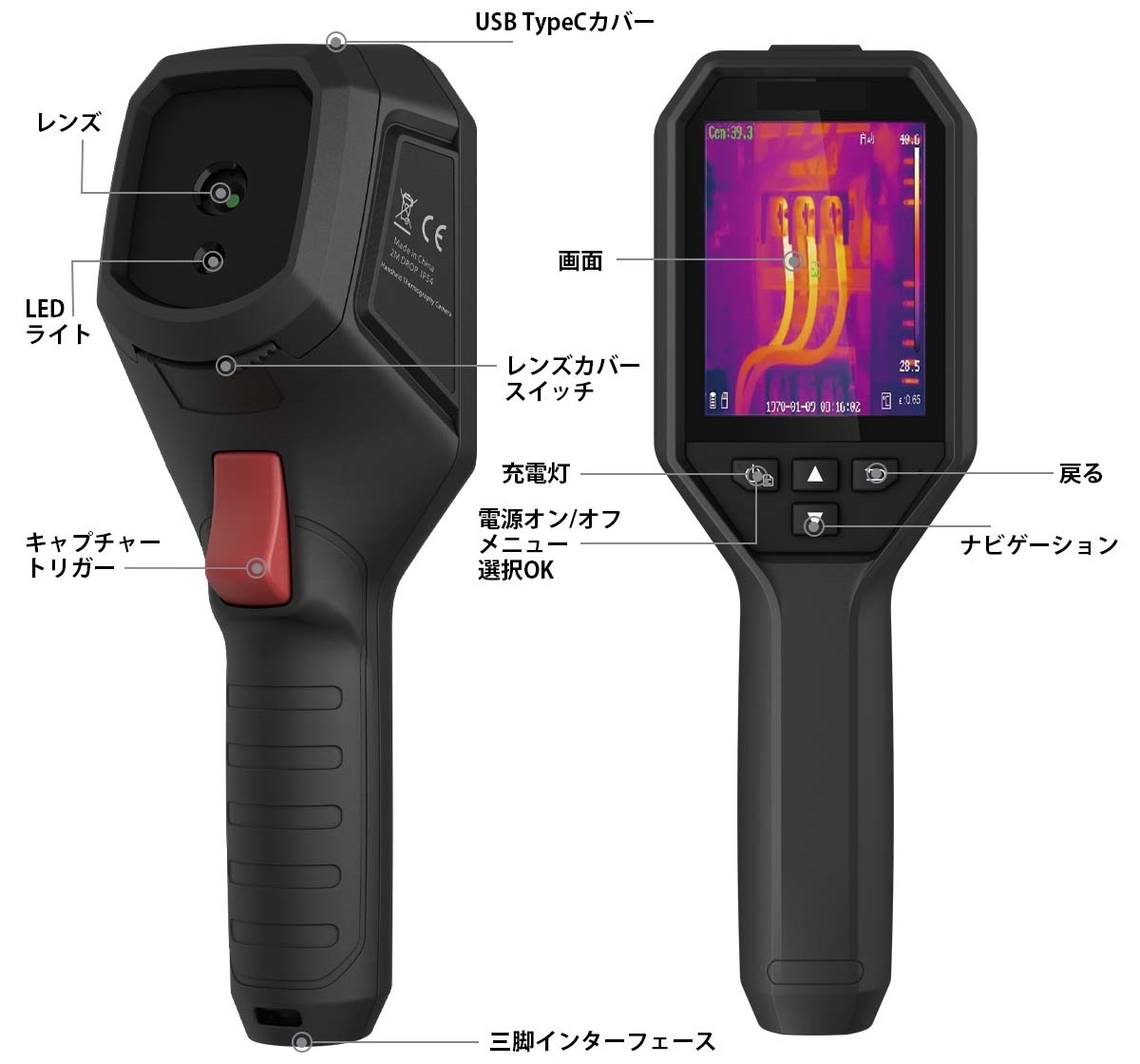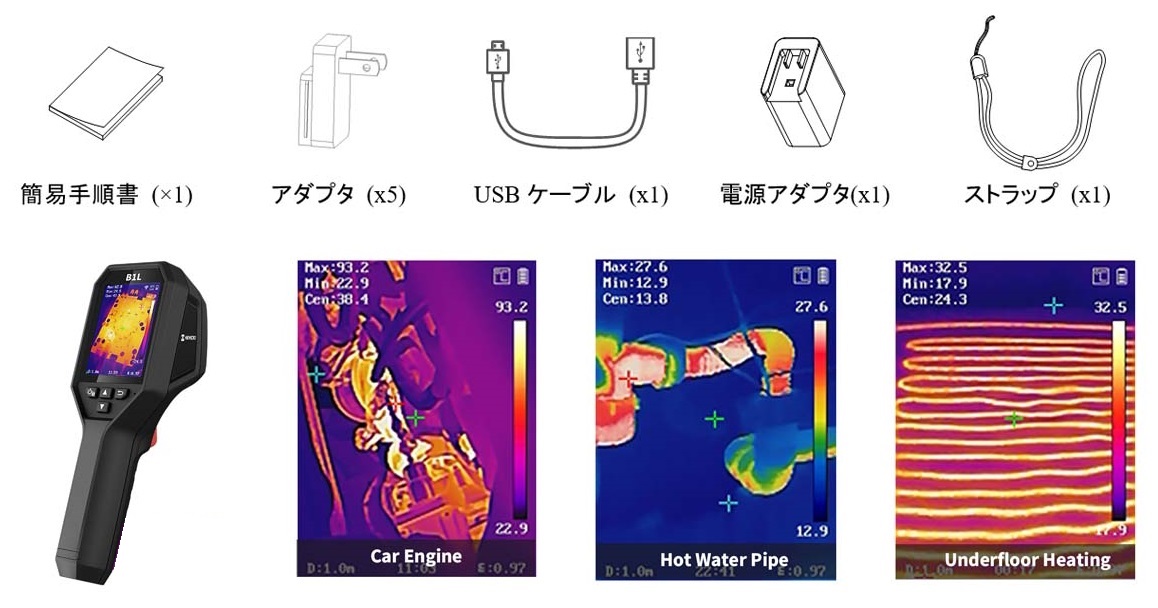 | M3427B-2LTは、目に見えない欠陥を検出するための温度測定用に設計されています。 サーモグラフィーの範囲は -20℃~550℃です。 高温のターゲットの温度を正確に測定することにより、スタッフが障害を迅速に発見するのに役立ちます。 ![]() ■特長 ●サーマル解像度:256 × 192 (49,152 ピクセル) ●高画質 高感度のVOx検出器(NETD < 40 mK(@25℃、F#=1.0))は、ターゲットの明確な熱画像を提供します。 ●温度測定範囲 :-20℃~550℃ ●精度:最大 (± 2℃/3.6°F、± 2%) ※周囲温度15℃~35℃ および 0℃ を超える物体温度の場合 ●複数の画像モード お好みに合わせて、サーマル、フュージョン、PIP、オプティカル モードを選択できます。 ●クイック温度測定 さまざまなプリセットのおかげでフルスクリーン測定は、一目でどこでもチェックします。 測定プリセット: センター スポット、ホット スポット、コールド スポット、オフ。 ●Wi-Fi接続 内蔵 Wi-Fi と HIKMICRO ビューアー アプリを介してモバイル デバイスに接続し、画像をすばやく共有します。 ●オートレンジ 検出されたターゲットの温度に基づいて、温度測定範囲を自動的に変更します。 ●25Hzの高速画像周波数 シーン全体をパンしたり、移動するターゲットを表示したりしながら、スムーズなビデオと測定を提供します。 ●3.2インチLCDスクリーンディスプレイ ●最大8時間の連続稼働 ●革新的なマクロモード クリップオン マクロ レンズを使用することで、500μの細部まで見ることができ、プリント回路基板やアセンブリのコンポーネントなどの小さな物体の温度を正確に読み取ることができます。 ●高温アラーム 内蔵のスピーカーとフラッシュ ライトにより、オペレーターは高温を音声と視覚で警告します。 ●アナライザソフトウェア 付属のソフトウェアは、キャプチャした写真のサーモグラフィ情報を分析し、レポートを生成するための柔軟な方法 (点、線、長方形、円、多角形) を提供します。 ■各部名称 ![]() ■利用シーン ![]() ■標準付属品 ![]() ■仕様