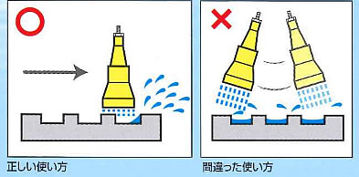 | 高速回転で強力波動により細かい所まで集中的に入り込み効果を上げます。 エアーの消費量も節約でき、ボディはWカバーで丈夫で音も静かになりました。 ![]() ●強力な波動がすみずみまで到達するため、従来方式よりも水切り・除塵洗浄等の作業には大きい効果が得られます。 ●小口径の穴から噴出するエアーが回転振動により拡散されるため、従来の定常流方式よりも少ないエアー(または液体)消費量で広範囲の処理が可能になり、処理時間も短縮できます。 ●生産ライン上のビン・缶・プラスチック容器等はもちろん柔らかく変形しやすい立体物(袋詰め食品)にも対応できます。また軽量でスリップ・転倒しやすい物の容易になっています。 ●ボディはWカバーで従来品より丈夫になり音も静かになりました。 ■衝撃波動がワーク表面の窪み、突起、溝、隙間等にも到達 車ボディの水切り、官の水切り、ペットボトルの水切り、パンチングの水切り、 外壁の水切り、掘削作業の切り粉飛ばし ■基本構造とその効果 ●エアーを送ると圧力によってチューブが動き出し、カバー内壁に沿って回り始めます。 その状態でパタガンの噴射口に手を当てると、エアーで断続的に叩かれている感覚があります。 それが波動です。 ●チューブの回転により発生する波動は、回転数分のエアー衝突力を生み出します。 ●内側の白色カバーはベアリング支持によりフリーになっていて、チューブと同期して回ります。 これにより回転時の摩擦抵抗を少なくし、発塵と消耗を抑えています。 ![]() <凸凹した物に> パタガンは回転波動による効果で、エアー衝突力を繰り返します。 この効果で、窪みに溜まった水などを叩き出すことができます。 通常のエアーガンでの処理は、ある部分だけをエアーで押している状態です。 押すだけなので水は段差を乗り越えられず、窪みに残りやすくなってしまいます。 <転倒しやすい物に> パタガンでペットボトルに向けてエアー噴射する場合、エアーの当り箇所が常に移動するので、倒れにくくなります。 通常のエアーガンで噴射するとペットボトルはエアーで押され簡単に倒れてしまいます。 ■使用方法 パタガンで水切りを行う際の最良の効果を出す使い方です。 ①パタガンを絶対に振らないので下さい。効果が落ちます。 ②パタガンは降らずに横移動させて下さい。(アイロンをかける時のようなスピードで) ③パタガンと対象物の距離は10mm~20mmくらいが適切です。 ④距離は最長でも80mmくらいまで。(距離が遠いほど、ガクンと効果が薄れます。) ![]() ■タイプ ![]() ![]() ■寸法図