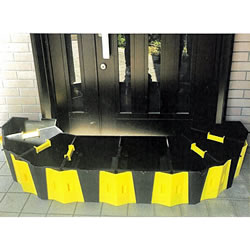 | 止水・防災バケツ 防災用具にプラスチック材再利用 ![]() ■水害から命、建物を守る 近年温暖化が加速し、集中豪雨が全国各地で常態化している環境下、毎年様々な地域で起こる水害被害を阻止するため、独自技術を織り込んだ新商品、土のう袋に代わる超水防止の防災バケツ 防災バケツは、低価格、軽量でお子様や、お年寄りでも簡単に短時間で設置することができます。 浸水が予測される場所に防災バケツを並べ、水や砂、石等を入れることで、建物への浸水を防ぐ事が出来ます。 バケツの間の仕切り板は水圧が加わるほどバケツに押し込まれ、水漏れを防ぐ仕組みになっています。 ![]() ■特徴 ●軽量で誰でも簡単スピーディーに設置可能 ●水だけではなく、土砂も入れることができる。 ●重ねて高さを出し使用可能 ●使用後の保管は、重ねることで省スペースに収容可能 ●耐久年数(3年)を超えるものを回収し、再利用する事で新しい商品に生まれ変わる。 ■用途 ●家屋・車庫・地下道などへの浸水防水 ●工事現場での止水対策 ●崖崩れなど災害時の水害対応補助 ■収納方法 防災バケツはスタッキングすることで、重ねて収納でき、省スペースで保管することができます。 バケツの上部には引っ掛かりがありブルーシートを掛けれるようになっており、高さを出すことも出来ます。 ![]() ■検証結果 ![]() ![]() ■使用方法 ![]() ■性能比較 ![]()