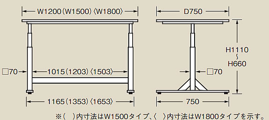 | 中量タイプ メラミン天板、中量タイプ アクリル系樹脂天板 ●任意の高さに調整可能 ![]() ■天板タイプ ![]() ![]() ![]() ■寸法図 ![]() ■仕様 (mm)