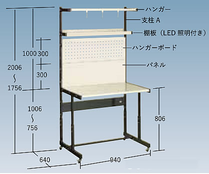 高さ調節式LED・ハンガーボード付き移動型作業台 品番 M39TH-90CYS 価格は下記をご覧ください |