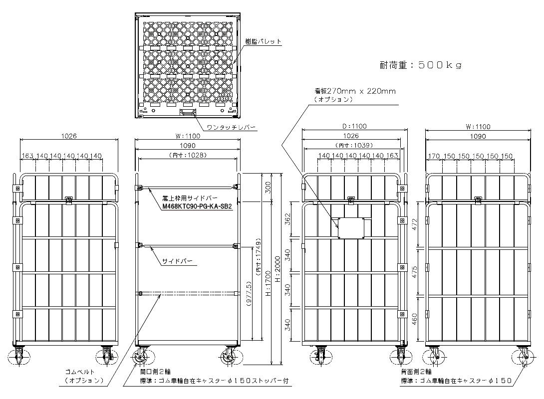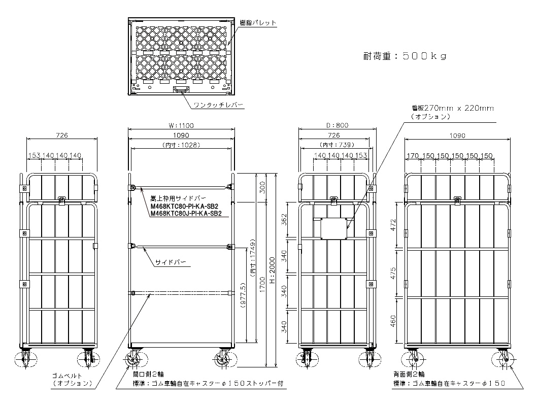 | トールH2000コンビテナーカゴ台車 品番 M468KTC80-PI-KA | 【詳細表示】 | |||||||||