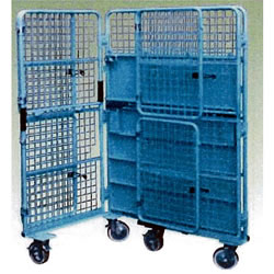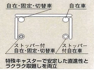 | ●内部は中間棚折りたたみ式で2段式 ●頑丈で最大積載800kg(上段300kf+下段500kg) ●上下2段の観音扉270°フルオープン ●50mm間隔のメッシュで、荷抜き、荷こぼれの心配なし ●特殊キャスターで安定した直進性と楽な取り廻しを両立 ●高性能かつL型折りたたみ方式 ![]() ■折りたたみ時 ![]() ■キャスター配置図 ![]() ■仕様
