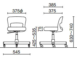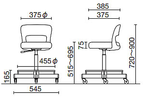 背もたれ付き高作業用チェア(リング付きメッキ脚)![]() ■寸法図