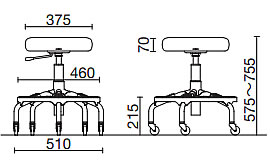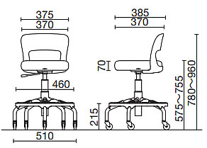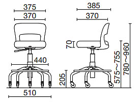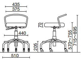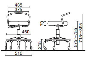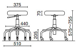 背もたれ付き高作業用チェア(リング付きメッキ脚)![]() ■タイプ/寸法図