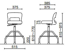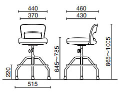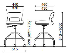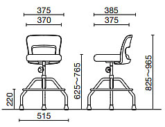 背もたれ付き高作業用チェア(ガス上下調節タイプ)![]() ■タイプ/寸法図