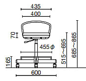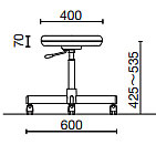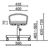 作業用チェア キャスター仕様(背パイプ付)![]() ■タイプ/寸法図