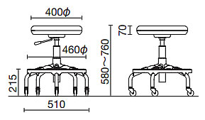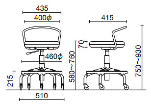背パイプ付き高作業用チェア(帯電防止樹脂ステップ付きメッキ脚)![]() ■タイプ/寸法図
