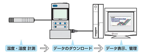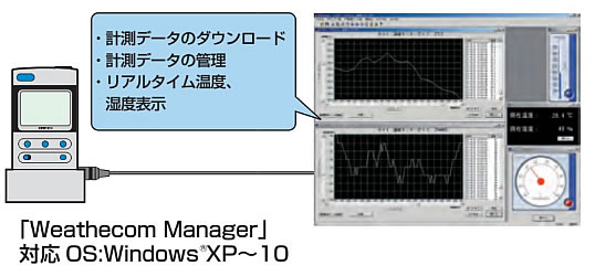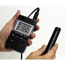 | ●耐結露性にすぐれた電子湿度センサを搭載しています。 ●内蔵CPUがデータを処理し、微小な温度・湿度の変化を正確に表示します。 ●最大8,000点のログデータを保存でき、ソフトをダウンロードすることでデータ管理ができます。 ●学校、工場、倉庫、研究室はもとより、コンピュータールーム、オフィスや園芸などあらゆる環境下での計測、温湿度管理に使用できます。 ●コード長1.5mのセンサ部は、手元で数値を確認しながら、離れた場所の計測が可能です。 ![]() ■高性能・高精度、温度、湿度センサ搭載 ●耐結露性にすぐれた電子湿度センサを搭載。 内蔵CPUがデータを処理し、微小な温度、湿度の変化を正確に表示。 ●測定精度、表示範囲、表示単位などがバージョンアップ。 ![]() ■大容量、多彩なメモリ機能搭載 ●大容量メモリを搭載。最大8000点までログデータの保存が可能。 研究や、倉庫管理などの長時間の温度、湿度計測が可能です。 ●記録したい時だけ最大50点メモリできる一時記録モード。 ●サンプリング周期を1びょうから120分まで設定でき、電池寿命を大きく延ばすことができます。 ■専用コントロールソフトウェア ●本体とパソコンを付属のUSBケーブルで接続する事で、現在の温度、湿度をパソコンにリアルタイムに表示。 ●本体に記録したログデータをダウンロードして、グラフ表示、「CSVフォーマット」での保存ができます。 ●グラフレポートプリント機能が、日付、時間指定など見たい情報を見やすくプリントアウトしてくれます。 ●専用ソフトウェアはWeb上でダウンロードします。(無料) ![]() ![]() ■教材から業務用まで様々なシーンに対応 学校、工場、倉庫、研究室はもとよりコンピュータールーム、オフィス、園芸、などあらゆる環境下での計測、温度、湿度管理に便利な1台です。 ![]() ■表示画面 ![]() ■センサープローブ ●材質:ABS樹脂 ●ケーブル長:1.5m、5m ●重量:75g/188g ●生産国:日本 ●荷姿サイズ:22×130×22 mm 80g/260g