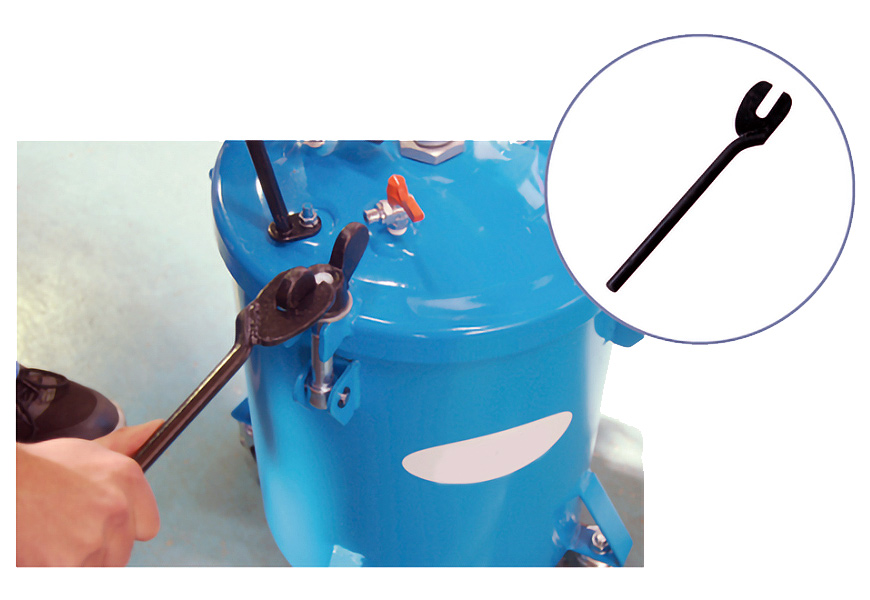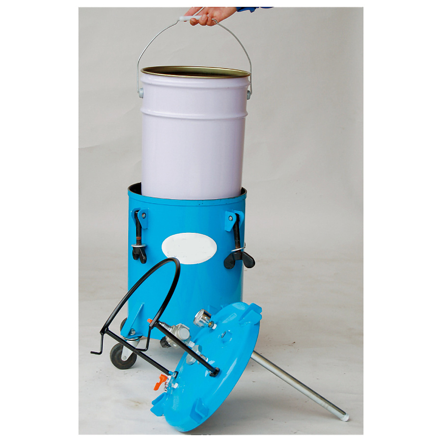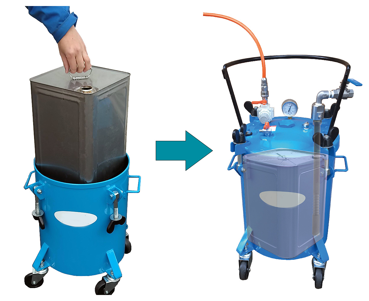 | 密閉加圧式・吐出専用 キャリー移動で脈動なく吐出 高圧力なので、噴射や吹き付けも可能 ![]() ■特長 ●一斗缶やペール缶を入れて丸ごと加圧 エア注入すると約一缶分は充填不要で、缶を丸ごといれて加圧するポンプです。 缶の口に左右されない構造の為、一斗缶・ペール缶(オープン・クローズ)など容器を選びません。 ![]() ●高粘度の液体に対応 容器を入れて丸ごと加圧するからラクラク高粘度も吐出します。5,000cPまでの液体でも使用可能です。 ●液体を無駄なく吐出 バネ式で缶の底までパイプが届くので、残液を最小限に抑えます。 ※0.5MPaで安全弁が開きます。 ※加圧は0.3MPa以下でご使用ください。 ●連続運転可能 ●押上げ能力が30m ■用途 高圧力で高所や遠距離へも移送 ■缶を直接入れて使用可能(※ペール缶別売) ![]() ■取出し金具がついているので缶の出し入れもラクラク ![]() ■専用スパナでしっかり締め付けられます。 ![]() ■仕様