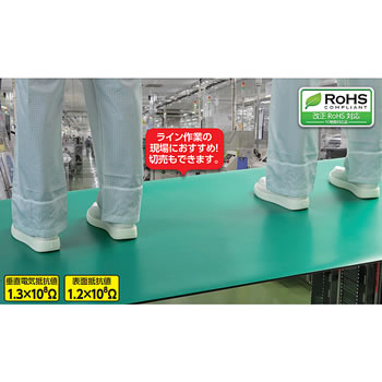 ![]() ■表面形状 ![]() ■底冷えや疲れも軽減 導電性を維持しながら高倍率に発泡した クッション層が立ち仕事による疲労防止、 転倒時のケガ防止、底冷えなどにも効果を 発揮しセル生産工場にも対応します。 ![]() ■ゴミや汚れの拭き取りが簡単 フラットな表面形状なので細かいゴミ や汚れが付着しても拭き取りやすく、 キレイな見た目が続きます。 ![]() ■使用例 ![]() ■仕様