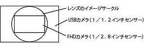 レンズの撮像範囲とカメラのエリアセンサーの関係 ![]() FHDカメラ使用時は上記表の直径と高さが約半分程度となります。 M856KM-W100B-PC3: 解像度1920x1080 41.6fps USB3.0出力 M856KM-W100B-FHD2: 解像度1920x1080 60fps HDMI端子出力 |