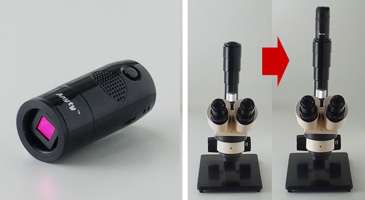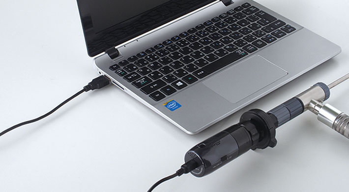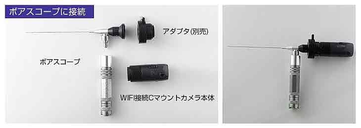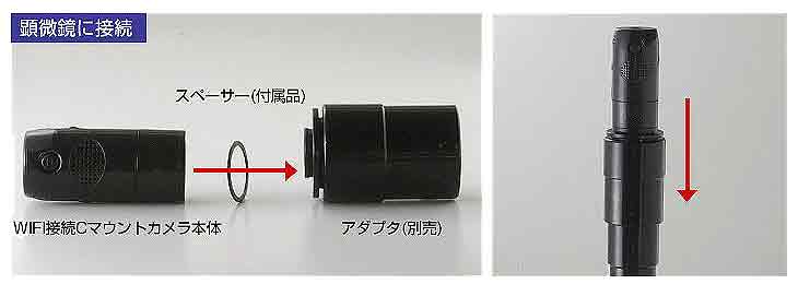 | 覗き込まずにワイヤレスで画面を確認。 今お使いの顕微鏡やボアスコープにセットするだけで顕微鏡やボアスコープが映している映像をレンズを覗き込むことなく、スマホ・タブレット・PCで見ることができます。 ![]() ■特長 ●顕微鏡・ボアスコープの観察にワイヤレスで映像化 今お使いの顕微鏡やボアスコープにセットするだけでスマホ・タブレット・PCにWiFi接続で映像化。モニタで確認できます。 ※お持ちの顕微鏡やボアスコープによって映像の見え方が異なります。 ※本体に光源はございません。 ※接続時に必要なアダプタは付属しておりません。 ![]() ●顕微鏡から離れていても10見ないなら確認可能 このWiFi接続Cマウントカメラを使用することで、顕微鏡から最大約10m離れた場所でもスマートフォンやタブレット・PCで顕微鏡の映像を見ることができるようになります。 ※WiFi干渉や電波を遮る障害物がない場合のみ ●複数人で観察 M926BRC-WIFISを使用すれば、スマホやタブレット、PCの画面で確認できるので病院などの診療時や、美容などのカウンセリング時などに説明しながら状態を見せることができます。さらに、1つの顕微鏡の映像を約3台の端末で同時に見ることができるので、会議などで見せたい場合などで役立ちます。 ●簡単にWiFi接続できます。 無料アプリソフトウェアをインストールするだけで簡単に使い始めることができます。 スマホ・タブレットアプリ iOS6/7、Android4.1以上 ●ボアスコープなら危険な場所や身体を近づけられない場所に便利 ケーブルが邪魔にならず、今まで諦めていたエンジンなどの狭い隙間など安全に検査することができます。 ![]() ●撮影機能搭載 映像を静止画・動画撮影、保存が可能。撮影・データ保存できる機能が搭載し作業効率がアップします。 後から見直したり、画像を使用した資料を作成できるので、今までできなかったデータ化をすることによって業務の幅が広がります。 ![]() ●物理的な故障につながりにくいスイッチ押しボタン式 ![]() ●PCならUSB接続で有線式にも対応 PCならWiFi接続だけでなく、USBケーブルでも接続ができるため、顕微鏡の映像をPCに映し出すことができます。 WiFiが使える環境と使えない環境で端末を切り替えるなど、使用環境に応じて使い分けができます。 ![]() ●便利なUSBケーブル付き M926BRC-WIFISは充電式なので使用時に電源ケーブルが必要なくコンセントが届かない場所でも使用することができます。ACアダプタ付きなので家庭用コンセントで充電でき、また電池タイプのように使いたいときに電池切れで使えないという心配もいりません。 有線ケーブルをPCに接続するとPCから充電しながら使うことができます。 ![]() ●買い替えずに機能性をアップできる M926BRC-WIFISは今まで使ってきた顕微鏡・ボアスコープをそのまま活用することができます。 汎用性の高いCマウント規格なのでCマウント対応の様々な機器に取り付けて使うことができ、また装着も簡単です。 ![]() ●顕微鏡・ボアスコープに差し込むだけ 顕微鏡に接続する場合は、レンズカバーを外しM926BRC-WIFISとアダプタ(別売り)の間にスペーサーを挟み、アダプタに装着して顕微鏡本体に差し込みます。 ボアスコープに接続する場合は、レンズカバーを外しM926BRC-WIFISにアダプタ(別売り)を装着してボアスコープj本体に差し込みます。 ![]() ![]() ■仕様
