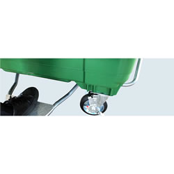 よりスムーズにラクラク回収。![]() ■キャスター 移動がラクな大型径のキャスターを使用しています。 ストッパー付きなので、風で勝手に動くことがありません。 ![]() ■踏みやすい大型ステップ フタが、ペダルを踏むことにより開くので、ゴミ袋を簡単に投入することができます。 ![]() ■ハンドル 移動用ハンドルが付いているので、容器に直接触れることなく回収搬送を行えます。 ■排水がスムーズ 水はけのよい傾斜した床の構造で、作業のしやすい大口排水栓が付いています。 ■寸法図 ![]() ■仕様