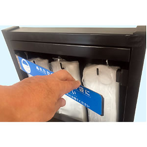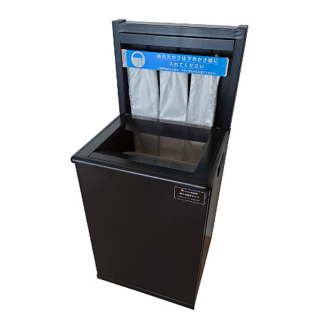 雨の日にはダストボックスから傘袋スタンドに変えることが出来ます。![]() ■雨の日にはダストボックスとして ダストボックスのパネルは、マグネット式ですから簡単に取り外し、パネル板を内容物の中にしまったり、パネルを板に装着しダストボックスにできます。 ![]() ■予備の傘袋入れ付き 側面内側(右・左両方)にポケットを付け、スペアの袋等の補充ができるようになっています。 ![]() ■簡単装着 傘袋の装着はフックに引っ掛けるだけ。簡単に装着できます。 ![]() ■寸法図 ![]() ■仕様
