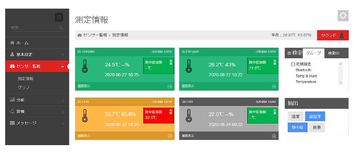 | Bluetooth 通信タイプの温度センサー。 スマートフォンアプリを使用してセンサーの設定や記録の閲覧ができる他、USBコネクタをPCに直接挿すことで、自動でPDFとCSV データへの書き出しも可能。 ![]() ■特長 ●USB接続で記録データをPDF・CSV 書き出し センサーのUSBコネクタをPC に挿すだけでデータを自動でPDF・CSVファイルに変換(Windows/Mac OS 両方に対応) Windows専用アプリでPC上からの設定変更、データ閲覧、クラウドアプリへのデータアップロードが可能 ●Bluetooth接続でスマートフォンアプリを使って記録データの管理・分析! ![]() ■専用アプリ ●スマートフォンアプリ 確認のたびにセンサーの設置されている場所まで行かなくても、データの収集・アラートの確認・設定をお手持ちのスマートフォンから行うことができます。 最大接続センサー数:10/台 対応OS:Android / iOS ![]() ●Windows専用アプリ Windowsアプリからもセンサー設定の確認、変更、グラフの閲覧が可能です。また、収集データの書き出し、クラウドアプリへのデータアップロードが可能。 ![]() ■仕様