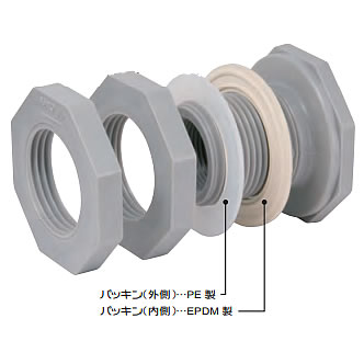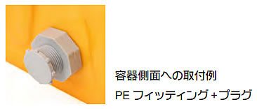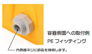 容器側面への排水口やおねじ部品等の取り付けは、オプションのPEフィッテイングをご利用ください。
