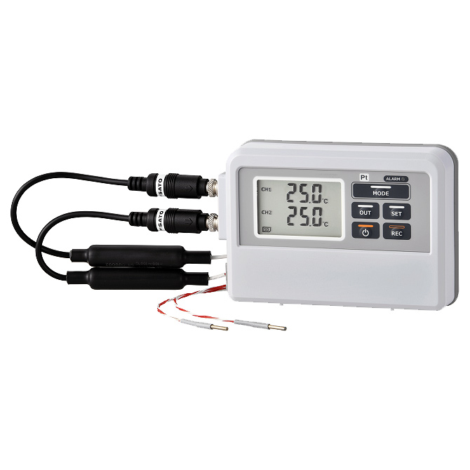 ■特長 ●最大2本のセンサが接続できます 1台の本体で同時に2ヶ所の測定が可能です。 ●防塵防水性 温度ロガーは以下の条件でJIS C 0920「IP65」に準拠した防塵防水構造です。 MC15K-L751S:分離センサMC15K-L751-2S、MC15K-L751-21S、MC15K-L751-22S、MC15K-L751-23S、MC15K-L751-24S、MC15K-L751-25S、MC15K-L751-31S、MC15K-L751-32S接続時 MC15K-L753S:専用センサMC15K-L753-1S、MC15K-L753-2S接続時 ●電池、ACアダプタ(別売り)のどちらでも使用できます 電源が無い場所でも、電池駆動で測定が可能ですが、長期間の記憶にはACアダプタをお勧めします。 電池をセットしている状態でACアダプタを接続すると、ACアダプタからの電源供給を優先します。 通常はACアダプタを使用し、停電時などは電池から電源を供給することが可能です。 ●記憶間隔は14種類の中から選択できます データの記憶間隔は1秒、2秒、5秒、10秒、15秒、30秒、1分、2分、5分、10分、15分、30分、60分、90分と豊富な設定が可能です。 ●最大16000データを記憶できます 記憶間隔1秒で約4時間、記憶間隔90分では約2年9ヶ月の長期に渡るデータが記憶できます。 ※記憶間隔と記憶容量から総記憶時間計算の仕方:記憶容量×記憶間隔=総記憶時間 例)16000×5秒=22.2時間 ●記憶の予約が可能です 記憶を開始する日時を予約(設定)すると、予約した日時に自動で記憶を開始します。 ●記憶したデータはパソコンやメモリカードにコピーできます 記憶した測定データはパソコンへのダウンロードのほかに、microSDメモリカード(別売り)にコピーが可能です。(記憶中もコピー可能) ●4つの記憶方式からデータの保存方式を選択できます 1.ワンタイム方式 メモリが一杯になるまでデータの記憶を続ける方式です。記憶データ数が16000になると自動的に記憶を終了します。 2.エンドレス方式(上書きモード) メモリが一杯になると、データの先頭から上書きをおこないます。直前の決められた期間のデータ収集に最適な方式です。 3.データ数指定方式 あらかじめ記憶するデータの数を1~16000 の間で指定することができます。不要なデータを取りたくないときに最適な方式です。 4.ページ方式(メモリ分割モード) メモリを4分割(4ページ)することができます。それぞれに異なる場所や時間のデータを順次記憶する方式で、1台で複数台分の利用ができます。 1ページは4000データを記憶可能です。 ![]() ■主な機能 ●電源が切れてもデータは消えません 電源が切れても記憶した測定データは内部メモリに保存されるため、万一の電池切れでも安心です。 ●キーロック機能で誤操作を防止 記憶中や予約スタート待機中の誤動作防止用として、キーロックを設定することが可能です。 ●上下限の警報値が設定できます 測定値が警報設定値を超える、または下回ったとき、本体のALARMランプを点灯、液晶の「Hi/Lo」マークを点滅表示します。 測定値が設定値内に戻ると、ALARMランプおよび「Hi/Lo」マークは消灯します。 ●機器にID番号を設定できます 機器に6桁のID番号を設定できます。複数台をご使用の場合、機器の識別が容易におこなえます。 ![]() ■解析ソフトウェア(標準付属) ●メイン画面 指示計の各種設定や記憶したデータの読み込み、各種データ解析をおこないます。 - 指示計に記憶した測定データをソフトウェアに読み込みます。 microSDメモリカード(別売り)にコピーした測定データも読み込み可能です。 - USBハブなどを使用して、最大10台の指示計を同時に接続できます。 - ソフトウェアに読み込んだ測定データは、グラフ表示・保存・印刷・用途に応じた様々な解析(拡大・縮小、選択期間の解析・保存、積算解析機能など)が可能です。 - データをCSV形式で保存した場合、市販の表計算ソフトでデータ解析ができます。 - ソフトウェアはパソコン専用です。 ![]() ●リアルタイム監視 測定データをリアルタイムで監視します。(指示計とパソコンを通信ケーブルで接続時) - 計測値をリアルタイムグラフで表示します。 - 計測値、 最高値、 最低値、平均値、暑さ指数(温湿度タイプのみ)、警報情報をリアルタイムモニタで表示します。 - 同一機種、同一タイプの場合、USBハブなどを使用して、最大10台の指示計を同時に監視できます。 (温度タイプと温湿度タイプを混在してのリアルタイム監視はできません。) - 測定データのグラフ表示・保存が可能です。 - 警報値(測定値の上下限、暑さ指数)の設定が可能です。 設定した条件(上限値を超えた、または下限値を下回った場合/電池残量警告/暑さ指数 など)が起こった場合に、事前に登録したメールアドレスへ警報メールを送信できます。 ※注意:送信用メールにSSL/TLS暗号化が必要な場合は、メール送信機能がご利用できません。 - ソフトウェアはパソコン専用です。 ![]() ■ソフトウェア環境