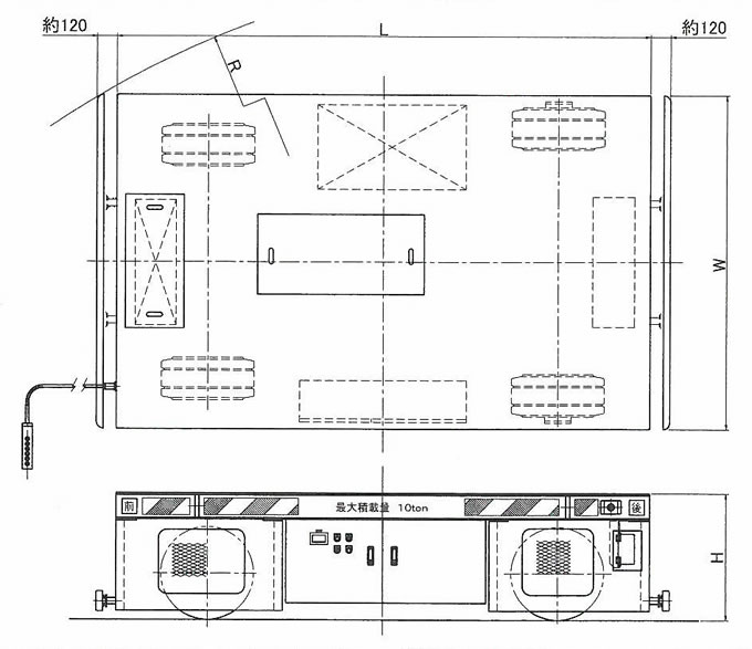 | 環境にやさしく、操作は簡単。 だれでもどこでも自由自在。 ![]() ■特長 ●バッテリー式なので環境に優しい。 ●無軌道式の為、どこでも自由に運べます。 ●運転免許など必要なく、誰でも簡単に操作が出来ます。 ■標準仕様 ●使用可能時間 約2時間 ■標準装備 ●回転灯 ●警報機 ●LS付き安全バンパー ●非常停止スイッチ ●両側面保護枠 ●有線操作式 ●バッテリー残量計 ●タイヤ切れ角表示灯 ■オプション ●無線操作 ●予備バッテリー ●メンテナンスフリーバッテリー ●一括集中補水キット ■外形図 ![]() ■仕様